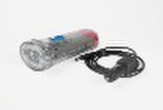 Thissolar LED flashlight has a durable IPX4 waterproof design which is designed forcar emergency indicator in evening.Extra magnetic head straps hold of thetop ofa car or every metal surface. In case of emergency,switch on thelight to the red indicating mode and putiton top of a car. Strongpenetrating and blinking red lightdraws attention ofother driversand policeeven in a far away distance. More importantly, the emergency mode is also applicable to everywhere at night. Features 1. Light weight 2. Magnetic head for attaching to metal and car surface 3. Single button control every light mode easily, convenient to users 4. Waterproof Approval IPX4 Charging Time 1. 6 to 8 hrs by solar, 2. 4 to 5 hrs by car cable OperatingModes 1. 3 ultra bright LED mode: 15,000 to 20,000 mcd, 2. 6 ultra bright LED mode: 15,000 to 20,000 mcd, 3. 10 red LED flash mode for car emergency: 2,000 to 3,000 mcd per each Usage 1. Car emergency 2. Camping, hiking and off-shore fishing 3. Any outdoor activities at night Working Hour 1. 6ultra bright LED mode: 5 - 7 hrs 2. 3 ultra bright LED mode: 11 - 14 hrs 3. 10 red LED flash mode for car emergency: over 48 hrs OEM and ODM are also welcome